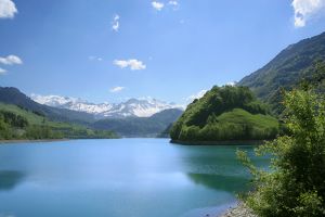 saw a beautiful blue lake, stretching sideways as far as her eye could see. But